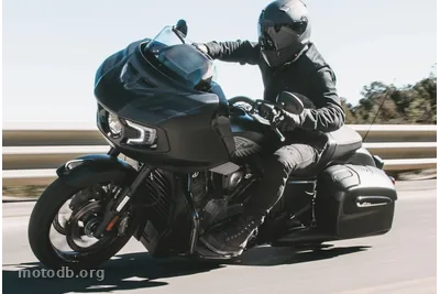 In the tavern where Harley Road Glides gather, the Challenger crashes its wheel into the counter. It looks at them, provokes them, and gives a handlebar twist on each side. Unlike other baggers from the brand, such as the Chieftain, its head doesn’t turn. It’s mounted on an aluminum chassis, not on the handlebar. Exactly the same specificity that distinguishes the Street and Electra Glide from the Milwaukee competitor; this lightens the steering.