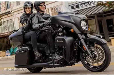 A little shorter, a little lighter, a little less expensive, it remains rich in equipment. The list resembles that of a car: adjustable windshield, heated grips, remotely lockable rigid saddlebags, safety hoops, tire pressure monitoring, lighting bar, ABS brakes, cruise control, keyless start, Indian badge on the tank, and Ride Command infotainment system with Apple CarPlay. The latter is faster than the previous generation thanks to a more powerful processor, new functions, predictive interpretation, and new customizable menus. 2021 enhances the journey with the ClimaCommand seat, heated AND cooled. The rider and passenger seats can be adjusted separately and benefit from 3 levels of efficiency. A USB port appears to the right of the dashboard.