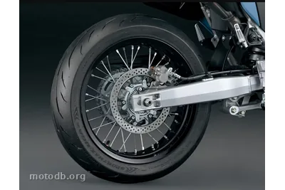La partie cycle a également été repensée. Le cadre en acier double longeron gagne en rigidité grâce à un renfort transversal au niveau du haut moteur, et le bras oscillant aluminium adopte un dessin plus contemporain. La fourche inversée offre 260 mm de débattement, le mono-amortisseur arrière monte à 277 mm, ce qui donne une garde au sol correcte pour un usage urbain et les petits enchaînements de ronds-points. La selle culmine à 890 mm, un chiffre qui sélectionne naturellement le public : les gabarits courts passeront leur temps à chercher l'équilibre aux feux rouges. Les pneus 120/70-17 et 140/70-17 sont montés avec chambres à air, ce qui surprend en 2026 mais reste cohérent avec l'héritage trail de la machine. Le disque avant Nissin de 310 mm mordu par un étrier deux pistons assure le travail de façon honnête pour 154 kg à freiner. L'ABS est présent, déconnectable à l'arrière pour ceux qui veulent glisser la roue en sortie de virage.