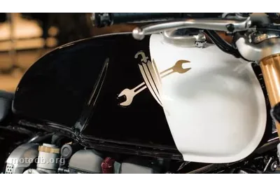 La versión DGR se distingue por una librea bicolor especialmente lograda. El negro profundo del depósito cortado por una amplia banda crema evoca la estética de las máquinas de competición británicas de los años sesenta, sin caer en el retro de bazar. Sobre ese depósito luce el emblema del DGR, una cruz formada por una llave inglesa y un paraguas, que resume bastante bien el espíritu del asunto: la mecánica y el dandismo, el aceite y el tweed. Un adhesivo discreto con el número 10 aparece bajo el sillín, en memoria de la década transcurrida. Nada ostentoso, solo un detalle para quienes realmente miran.