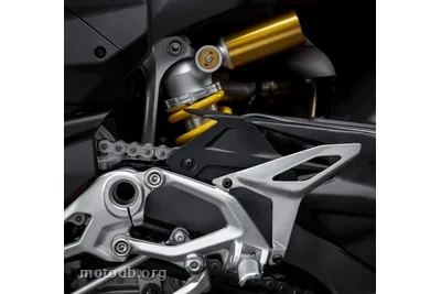 Ce qui change en profondeur dans cette génération, c'est la philosophie structurelle. Le cadre semi-périmétrique en aluminium descend à 3,47 kg, contre 4,42 kg sur le modèle précédent, avec une rigidité latérale réduite de 39%. Le bras oscillant abandonne le monobras iconique au profit d'un élément symétrique emprunté à la Superbike, 43% moins rigide latéralement pour améliorer la traction en sortie de courbe. La fourche inversée BPF de 43 mm gagne 5 mm de débattement pour atteindre 125 mm ; l'amortisseur arrière récupère 130 mm. Tout ça réglable dans les moindres détails. Sur la balance, la machine affiche 203 kg tous pleins faits pour une selle à 845 mm, cohérent avec le niveau d'équipement embarqué.