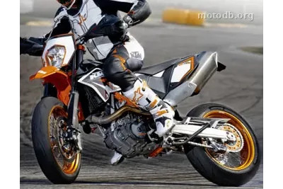 Prendre un monocylindre de 690 cc, lui coller 67 chevaux à 7 500 tr/min et 68,6 Nm de couple à 6 000 tr/min, puis poser tout ça sur un cadre tubulaire en acier chromoly qui ne dépasse pas les 140,5 kg à sec : c'est la recette de la KTM 690 SMC R, et elle n'a pas grand chose de subtil. KTM a construit cette machine pour ceux qui s'ennuient en ligne droite et qui cherchent l'angle de prise d'appui comme d'autres cherchent leur café du matin.